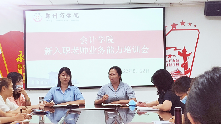 为帮助新教师快速实现角色转变,站稳讲台,8月22日下午,会计学院在广恩楼103会议室召开新入职教师业务能力培训会,我院院长祝利芳、副院长刘金金、各教研室主任以及本学年新入职教师参加了此次会议,会议由教学秘书耿玉伟主持。