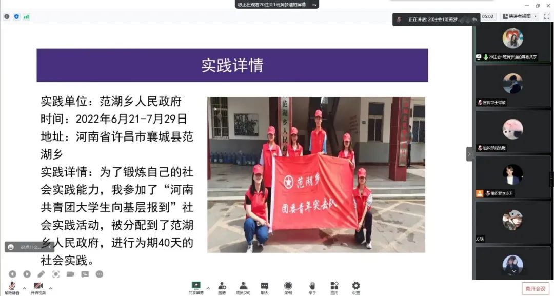 暑期社会实践活动是学生接触社会、了解社会、实践运用所学道德教育知识的最好途径与方式。会上同学们纷纷表示,通过主动参与社会实践活动,他们深刻意识到理论结合实际的重要性,明确了自己作为青年一代的责任与担当,不仅提高了自己的综合素养和实践能力,更树立了坚定的理想信念。