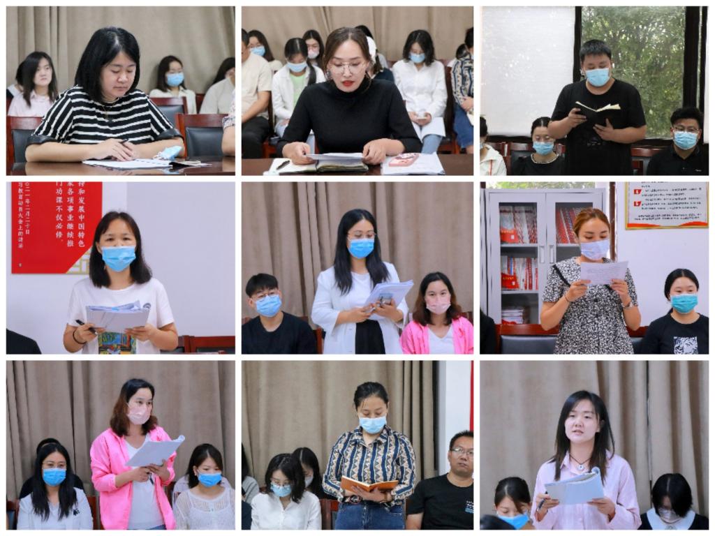 会议伊始,院长祝利芳代表学院全体教职工对校领导一行的到来表示热烈欢迎,并对我院基本情况做了概要介绍。其次,学院教学秘书、行政秘书及教师、辅导员代表分别结合各自工作,学习董事长书面致信和校领导讲话精神并分享感想心得。