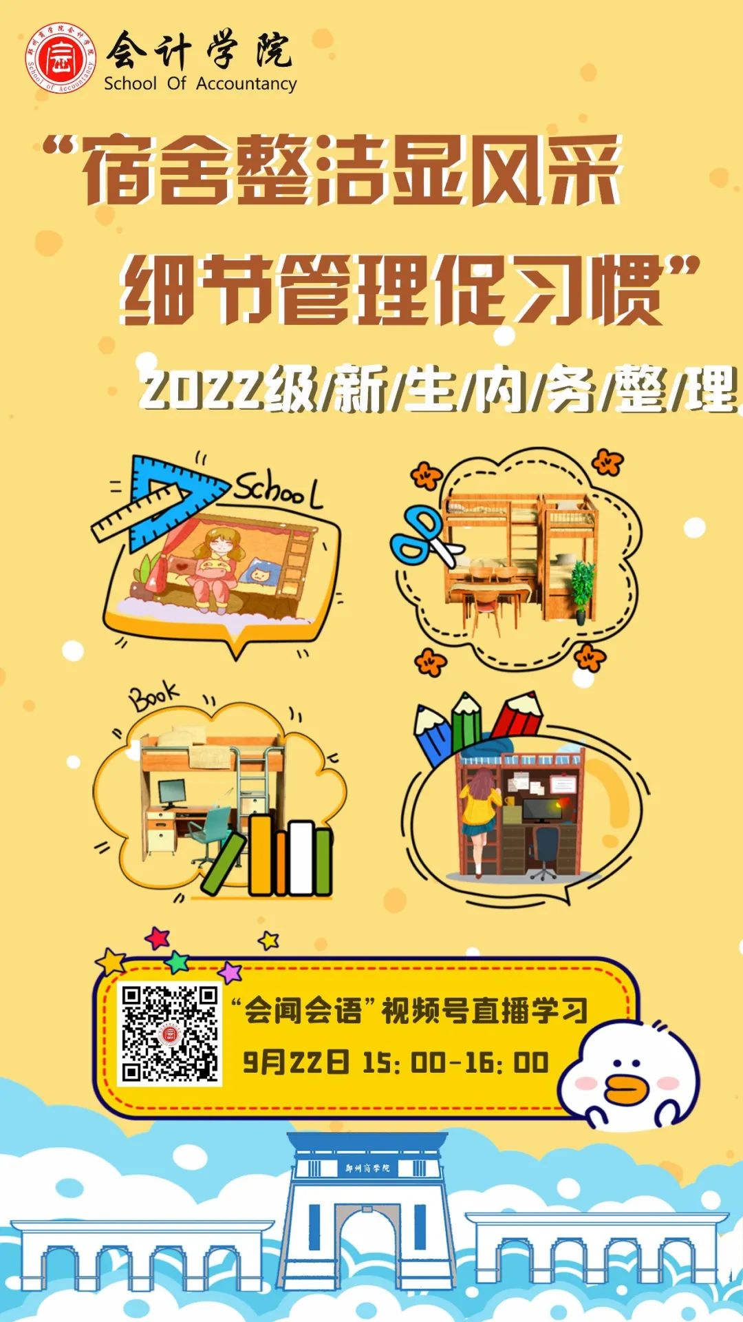 为更好地帮助2022级新生尽快熟悉校园,感受丰富的大学生活,树立人生发展新目标,在大学生活中实现全面发展和健康成长。9月22日,会计学院顺利举办三场线上新生入学教育系列活动。