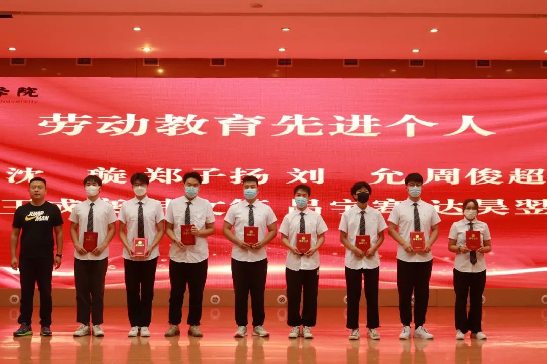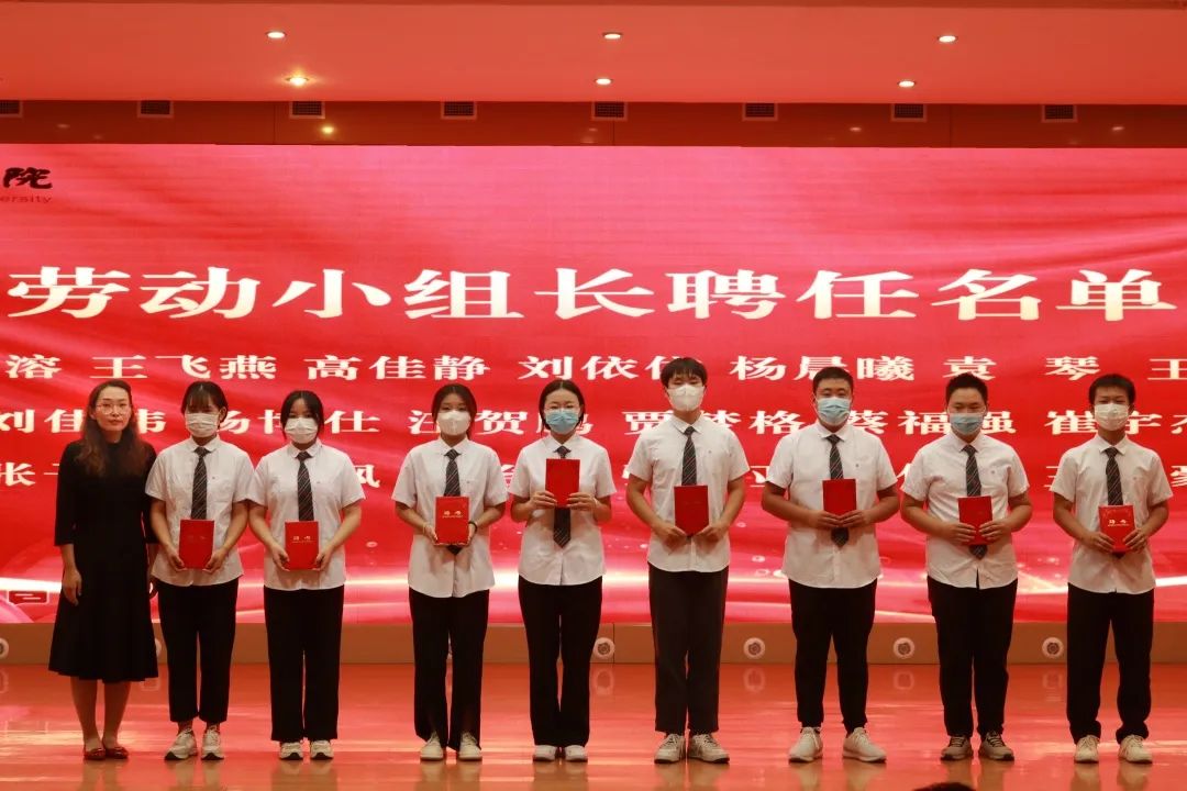 本次交接仪式由张紫妍老师主持。会议通过视频号全程直播。会上首先播放了我院劳动教育宣传片,随后展示了2021-2022学年五四表彰劳动教育先进集体、劳动教育主题月优秀组织奖奖牌。