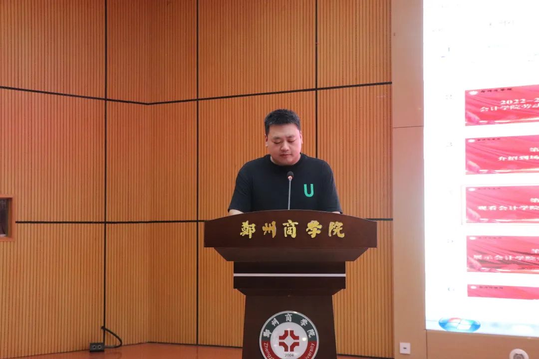 在学生代表发言环节,优秀劳动委员代表21会本6班周俊超同学分享了自己的劳动教育经验,为2022级新生更好地做好劳动教育工作奠定了良好基础。2022级新生代表22审计1班高东魁同学在他的发言中表示,在今后的学习生活中将积极投入到劳动实践活动中去,主动承担劳动责任,用自己的双手为建设美丽的郑商贡献自己的力量。