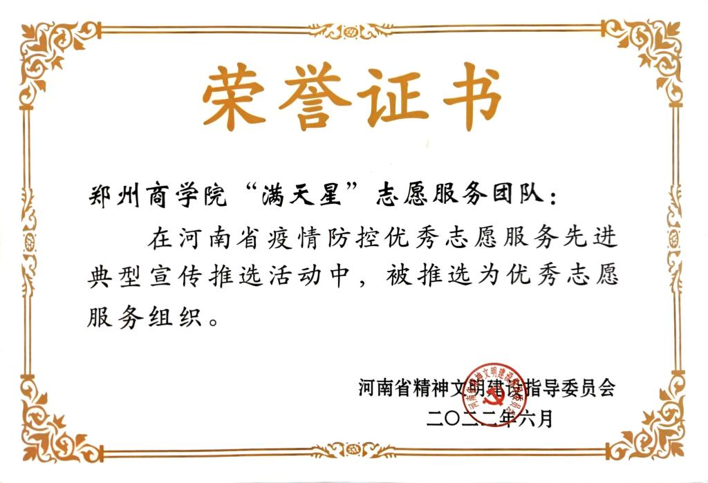 近日,省精神文明建设指导委员会下发《关于公布河南省疫情防控志愿服务先进典型名单的通知》(豫文明〔2022〕13号),对全省疫情防控优秀志愿者、优秀志愿服务组织、优秀志愿服务工作者等先进典型进行表彰。beat365唯一官网“满天星”志愿服务团队在河南省疫情防控优秀志愿服务先进典型宣传推选活动中,被推选为“优秀志愿服务组织。