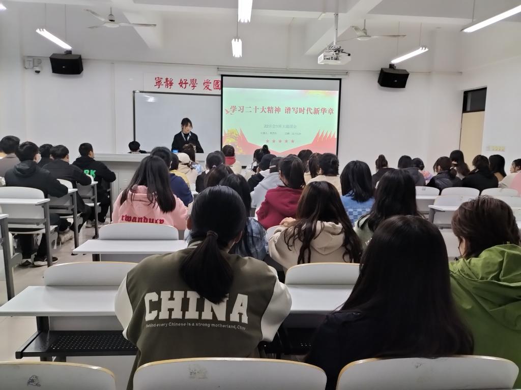 为深入学习和全面贯彻党的二十大精神,贯彻落实党的新思想,深化爱国主义教育。10月25日,会计学院各班组织开展“学习二十大精神,谱写时代新篇章”主题班会团会。