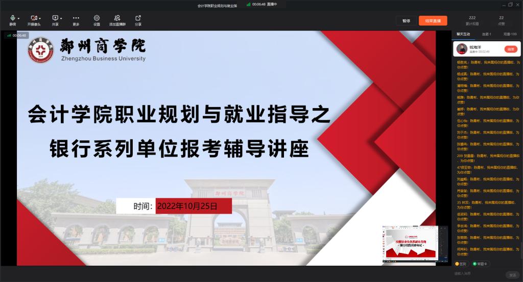 为进一步提高我院学生对当前银行单位报考就业现状的了解与认知,帮助学生更加清晰准确的掌握银行单位从业报考相关知识,了解现阶段应注重的知识储备和学习方法,做实做深做细学院就业指导工作。由会计学院主办的《会计学院职业规划与就业指导之银行系列单位报考辅导讲座》于10月25日在钉钉直播群线上举办。