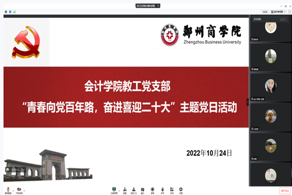 随后,我院教工党支部全体党员就会计学院这五年的成绩和变革进行了热烈的交流,在交流过程中,我院教工党支部的老师们感受到会计学院的产教融合、学科建设、教学科研、师资力量等方面的成长,并凝聚共识坚定信念把会计学院发展壮大。最后,我院教工党支部书记白静老师号召全体党员教师不忘教育初心,永葆政治本色,引领新时代的青年大学生踔厉奋发、勇毅前行。