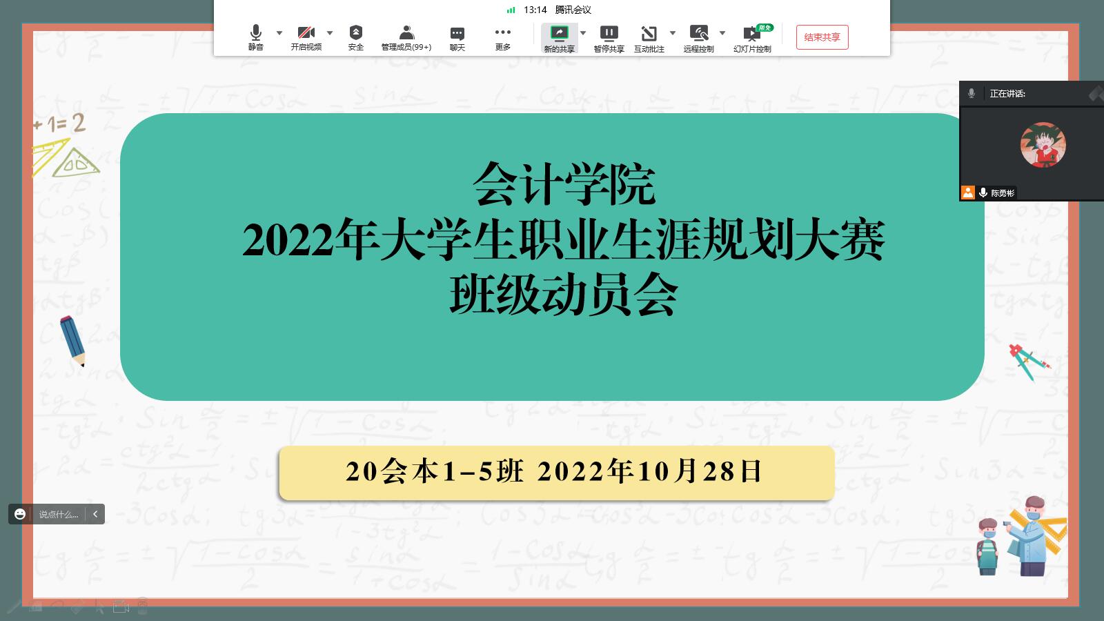 为进一步增强会计学院大学生职业生涯规划意识和就业意识,引导beat365大学生树立正确的成才观、择业观和就业观,科学合理地规划大学学习与生活,提高就业技能与实践能力。10月28日-11月2日,我院组织开展2022年大学生职业生涯规划大赛班级动员会,部分辅导员和学生代表参与此次会议。