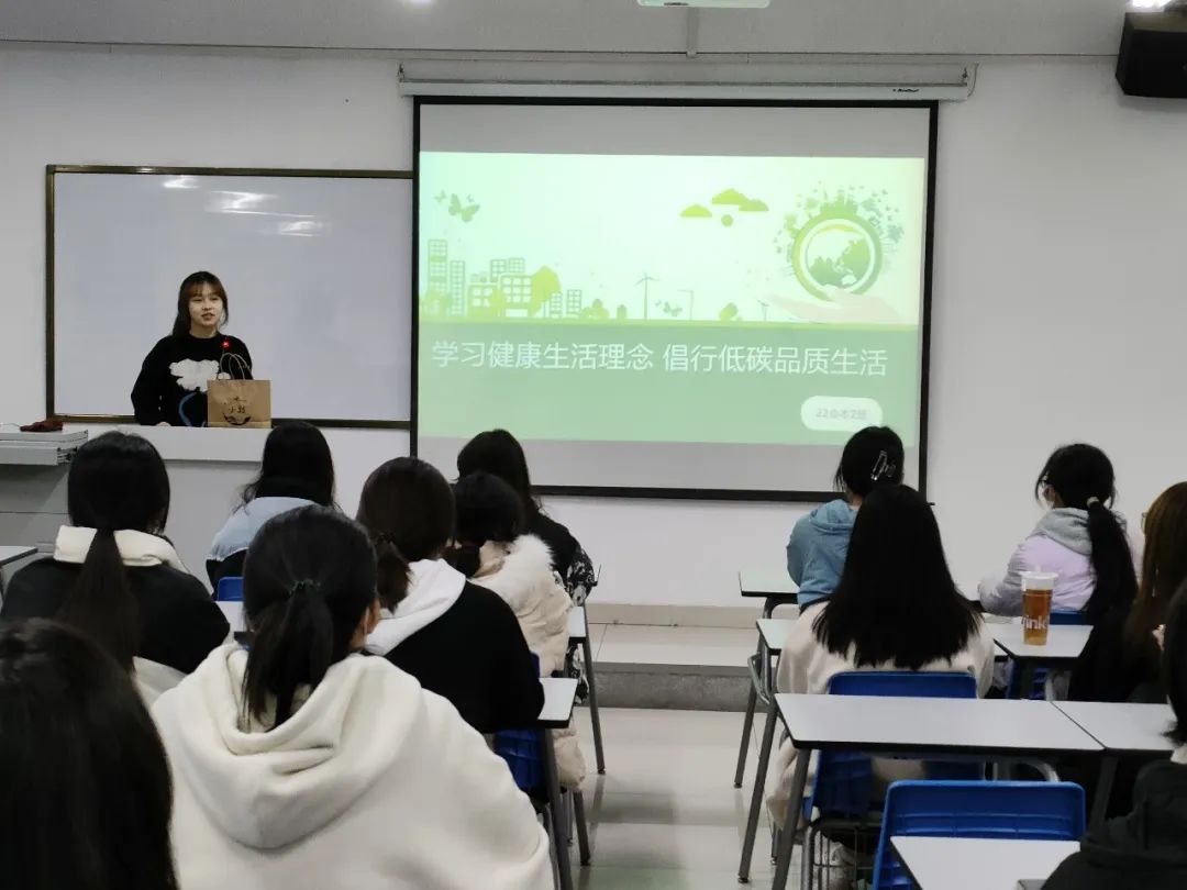 会议伊始,各班团支书带领同学们了解了“健康生活理念”以及“低碳生活”的含义。接着,通过讲解PPT及观看短视频等方式,对低碳生活展开进一步的说明。同学们纷纷表示要自觉做文明生活的倡导者、时代新风的传播者、美好环境的捍卫者、健康校园的建设者,并决心坚持践行节约举措、倡导绿色生活。