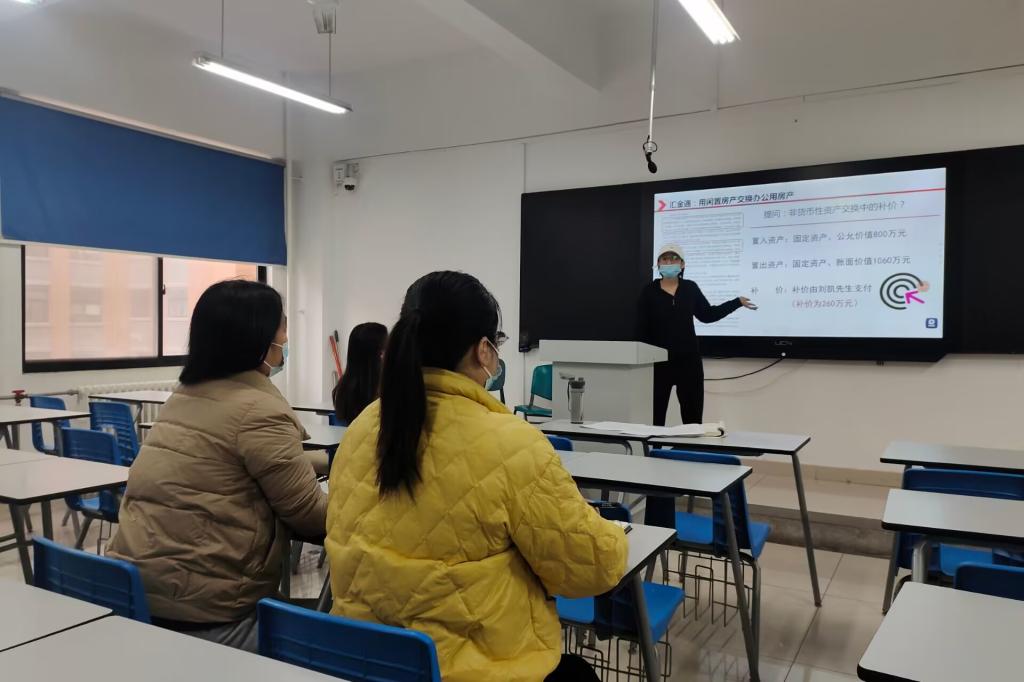本次活动在《高级财务会计》课程组负责人祝利芳院长的带领下,聚焦课程思政,将爱国主义、人文情怀、传统文化等思政元素融入课程教学,高效推进《高级财务会计》校级课程思政样板课的建设进度。活动上,王丽娟、路潇潇两位老师对自己的思政教学进行了展示和说课,王丽娟老师通过“红色曲别针交换一栋房子”的故事,让学生走入物物交换的世界,引出非货币性资产交换的主题,并引导学生领会“世上本没有垃圾,只是放错位置的资源”的感悟,激发学生内心的行动力;路潇潇老师以中国化工并购先正达的案例为切入点,展现中国“一带一路”的发展战略,感受中国“和而不同”的传统文化,并通过案例分析,带领学生理解企业合并的内涵,以及合并的类型。