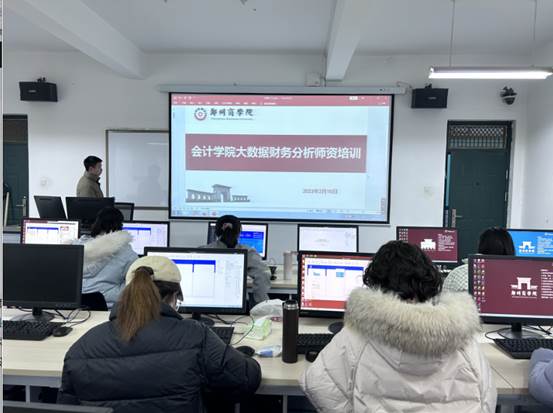 为进一步加强学院新商科数智化管理人才的培养,提升教师数智化技术应用水平和教学水平,进一步提升学生的数智化意识和数智化实践操作能力,2月10日,会计学院特邀跃客科技有限公司董朝阳经理进行数智化师资专项培训。此次培训在资讯大楼212教室开展,参训人员为会计学院院长祝利芳、副院长刘金金、各教研室主任、青年骨干教师以及实验课授课教师等。