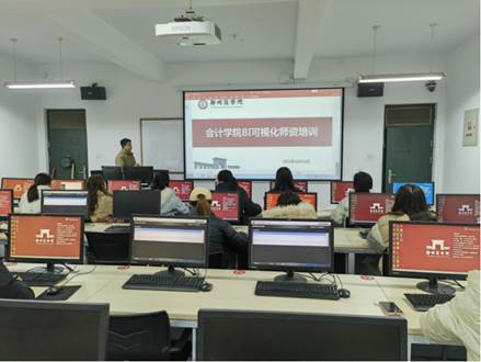 上午,董经理依托VDC财经大数据平台和Power BI工具进行财务与商业数据可视化分析培训。首先,董经理介绍了Power BI工具的应用领域、应用价值、人才需求等;其次,采用现场讲解与教师实操相结合的方式,让教师学习了数据可视化分析的理念、数据模型的构建、数据分析图表的制作和使用,并通过案例实操具体展现了Power BI的分析数据和共享见解的功能和相关操作技巧,让教师切实地体验了Power BI工具的便捷性、实用性。