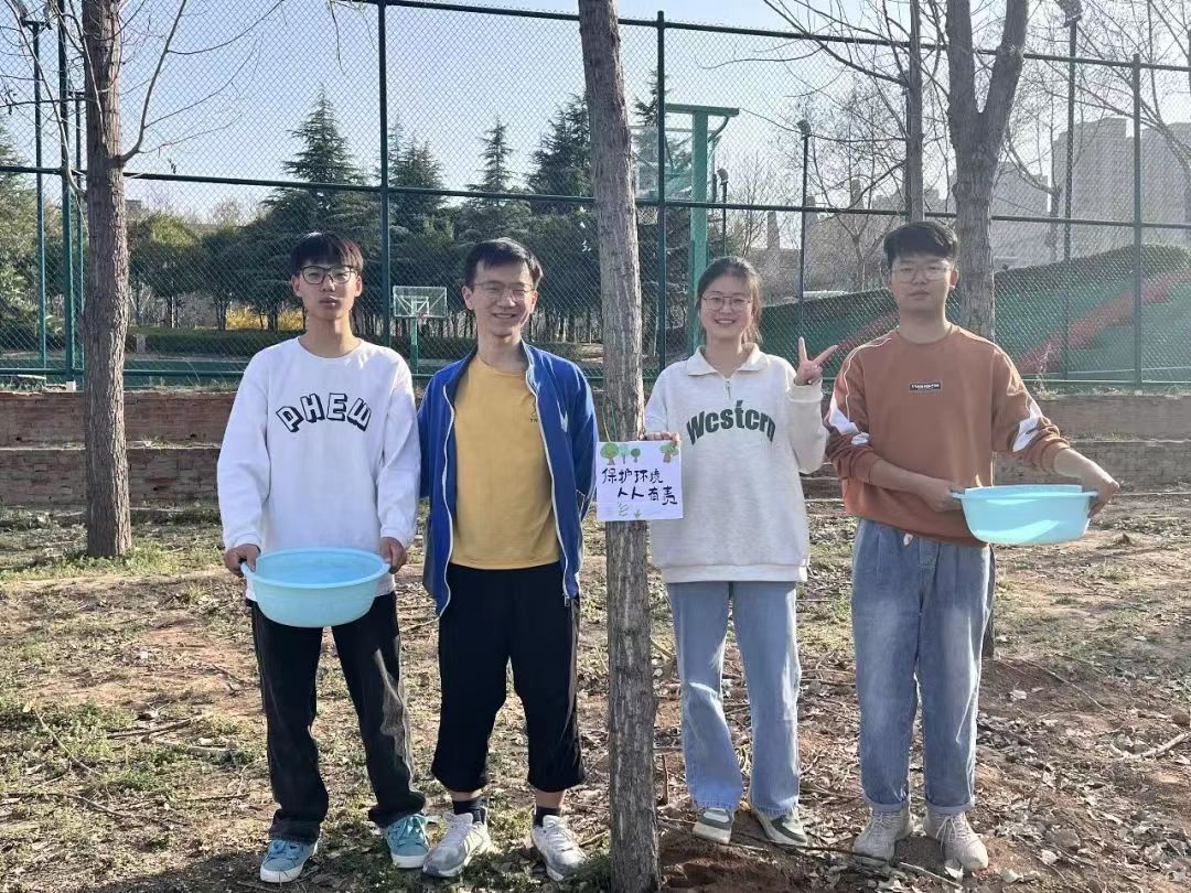 随后,各班学生对认养的树木进行浇水,并且捡拾周边垃圾,使周围环境更加干净整洁。