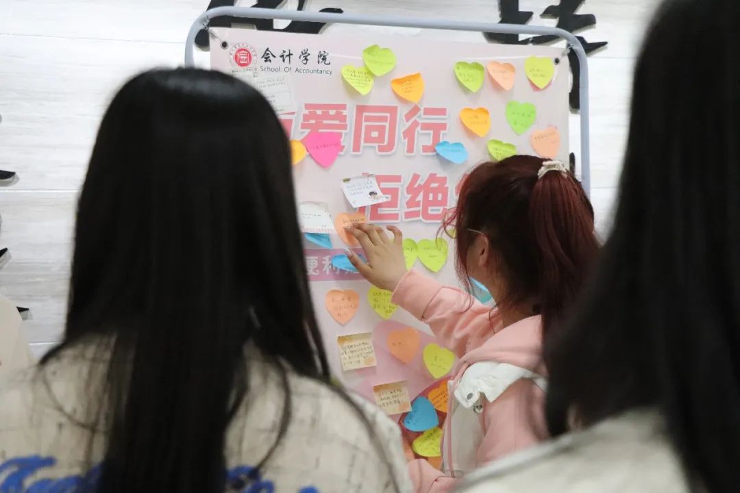 本次活动不仅仅只有便利贴上温情的话语,更希望能在其中传递大家互相关怀心灵慰藉之心,展现会计学院学子的温情,心中美好长存。希望会计学院学子能在此次活动中汲取力量,停止焦虑,向阳而生,点点星光,汇成星河。