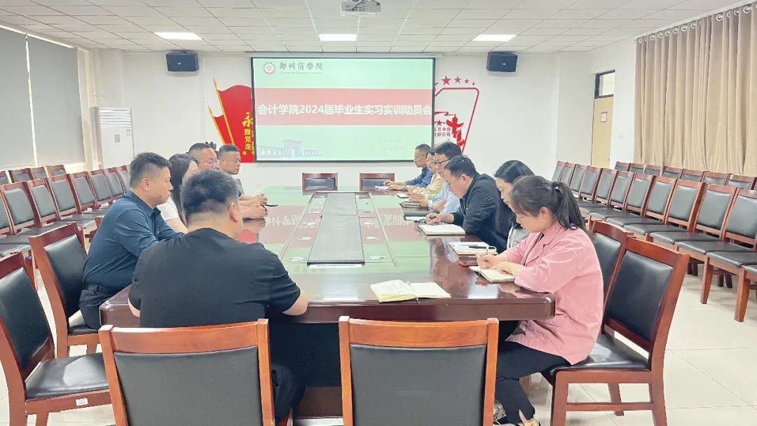 4月21日,我院组织开展2024届毕业生实习实训工作动员会,会计学院院长祝利芳、党委书记梁鹏、招生就业处市场科科长李闯以及2024届毕业班辅导员参加了会议。