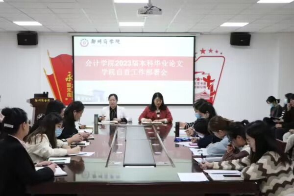 为进一步规范我院本科毕业论文管理工作,确保毕业论文质量,提高毕业论文管理工作效率,5月11日,会计学院组织开展了2023届本科毕业论文学院工作部署会议。此次会议由会计学院院长祝利芳、副院长刘金金、会计学院全体无课教师及辅导员等参加。
