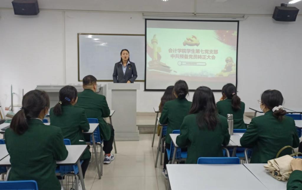 为进一步扩充党员队伍,加强和培养党的中坚力量,为支部增添新活力,切实保障党员的民主权利,提高新党员的群众公认程度。5月25日下午,会计学院学生第七党支部召开预备党员转正大会,会议由支部书记孙柳阳同志主持,宣传委员王佳同志以及全体党员同志参加会议。