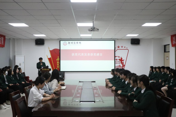 接着,邀请获奖代表史宏炜同学发表获奖感言。史宏炜同学说他在本次比赛中收获颇丰,给大家分享了他们团队在比赛过程中的经验。希望大家在获奖的同时也能戒骄戒躁,吸取经验教训,弥补自身不足,为日后参加其它比赛打下坚实基础。