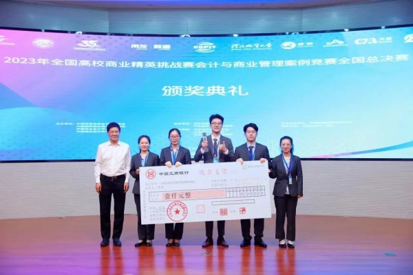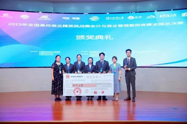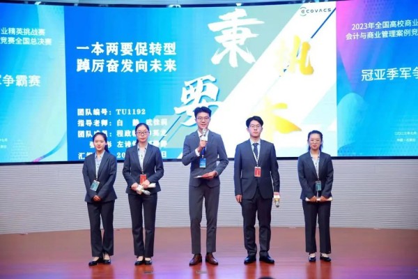 由中国国际商会商业行业商会和中国商业会计学会共同主办的2023年全国高校商业精英挑战赛会计与商业管理案例竞赛成功举办。该竞赛于2023年新增全国普通高校大学生学科竞赛榜单,属于A类赛事。历时半年选拔,我院“踔厉奋发队”与“满天星队”两支队伍与全国400余所高校3000余支队伍共同竞争,均获得国赛一等奖,其中“踔厉奋发队”(程政朝、申英龙、刘静静、左诗怡、张一彤)以小组第一名晋级全国总决赛精英赛,入围全国前48名。