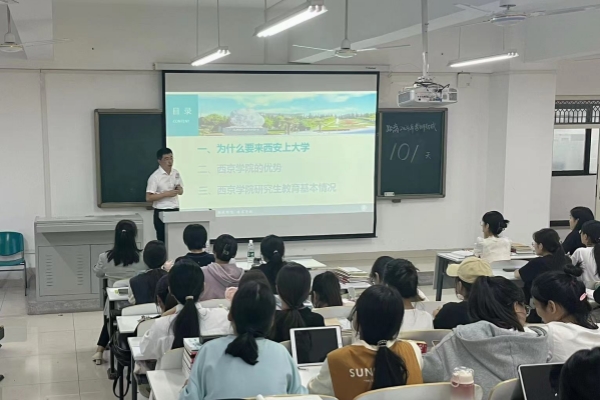 随后,西京学院校长助理刘鹏就西京学院的优势、硕士授权点情况、研究生培养特色、导师队伍、科研实力等多方面做了精彩细致的招生动员宣讲。
