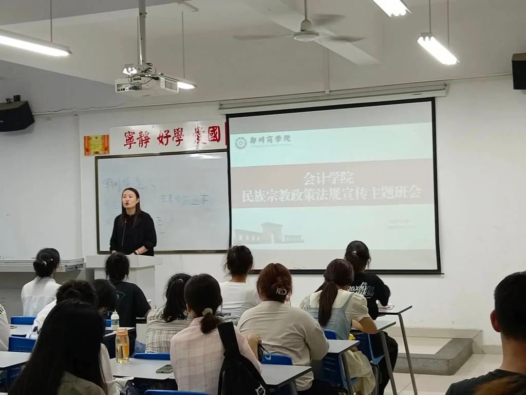 深入学习贯彻党的民族宗教工作精神,帮助同学们树立马克思主义宗教观,防止宗教向校园渗透,增强大学生明辨是非的能力,9月18日,会计学院新生辅导员组织班级学生召开民族宗教政策法规宣传教育主题班会。