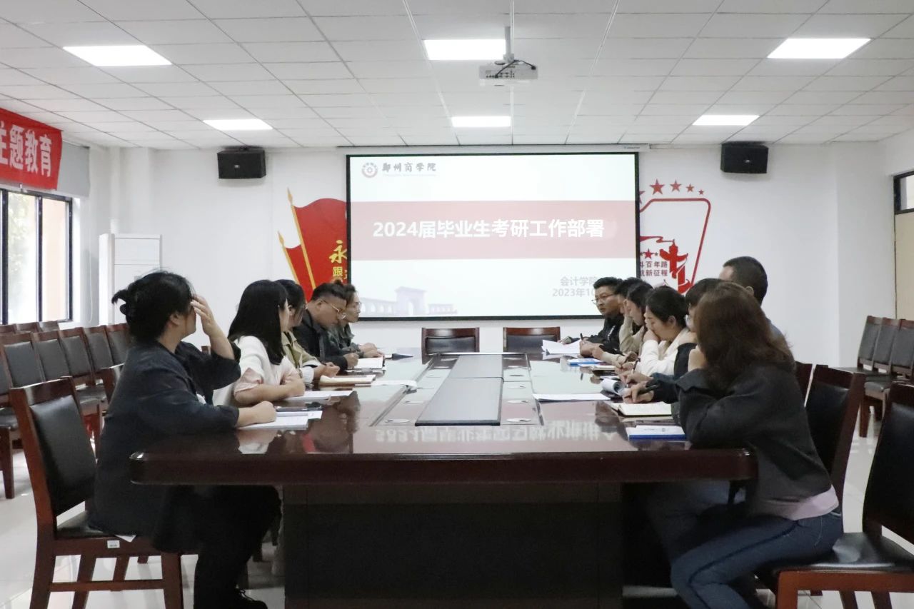 为全面提升我院人才培养质量,推动学院学风建设和高质量就业,积极营造考研氛围,扎实推进学院考研工作,提高学生就业竞争力。10月8日,会计学院召开2024届毕业生考研工作部署会,我院院长祝利芳、党委书记刘宏涛、副院长刘金金以及教学秘书耿玉伟、行政秘书兼团委书记杨茗涵、考研教研室主任武佳莉、2024届全体辅导员、就业工作专项组共同参加了此次会议。会议由党委书记刘宏涛主持。