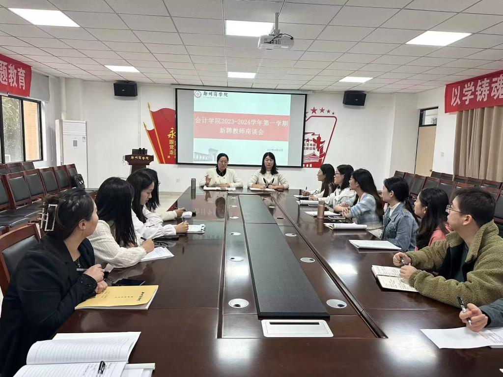 为促进新聘教师快速转变角色,适应教学工作,强化新进教师队伍建设,10月12日下午,会计学院在广恩楼103会议室召2023-2024学年第一学期新聘教师座谈会,我院院长祝利芳、副院长刘金金及所有无课新聘教师参加了此次座谈会。