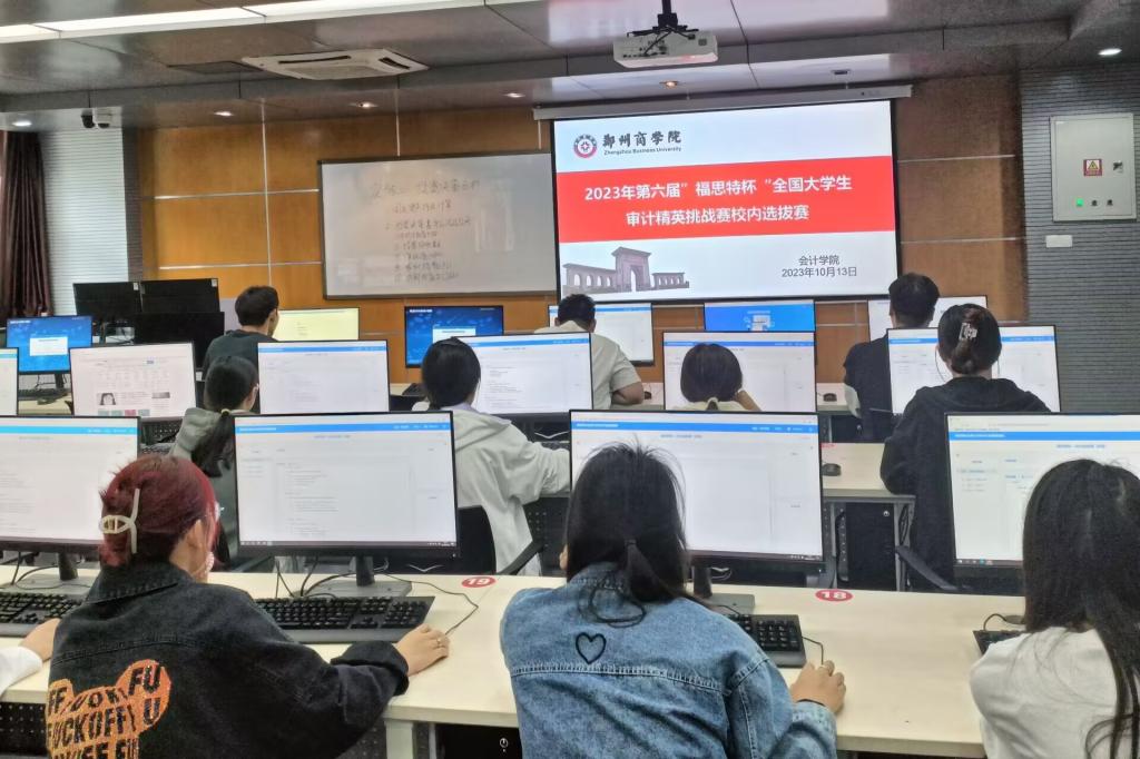 为推动审计学专业的改革与创新,实现大数据、区块链等信息技术与审计专业理论的深度融合,进一步深化产教融合,提高学生的动手实践能力,创新审计人才培养模式,培养适应经济社会需求的高职业素养审计人才,会计学院于2023年10月13日下午在实验教学楼3203举办了第六届“福思特杯”审计精英挑战赛校内初赛,由21级审计学专业的学生组成的7支队伍进行比拼。