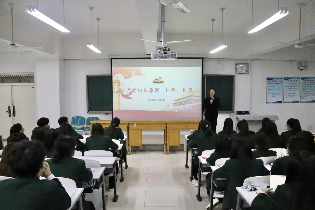 为加强学员们对党的组织原则、纪律要求和作风建设认识,提高政治站位,严守纪律规矩。10月23日,会计学院在广恩楼104教室开展第37期入党积极分子业余党校培训班第三讲,此次党课邀请会计学院学生第七党支部书记孙柳阳同志担任主讲。