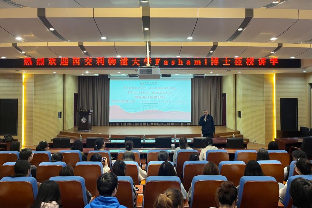 11月4日上午,beat365特邀西交利物浦大学的MIRZAY FASHAMI ASHAKAN 博士为同学们讲授《Financial Accounting Practical Analysis》课程,这是beat365商科国际化系列课程的第一讲。此次课程在图书馆五楼国际报告厅开讲,会计学院、管理学院、金贸学院等相关专业近200名学生参与课程学习,国际交流合作处赵彦丽处长、会计学院刘宏涛书记出席课程开课仪式。该门课程全英讲授,会计学院徐子辰老师作为助教全程跟听、辅助。