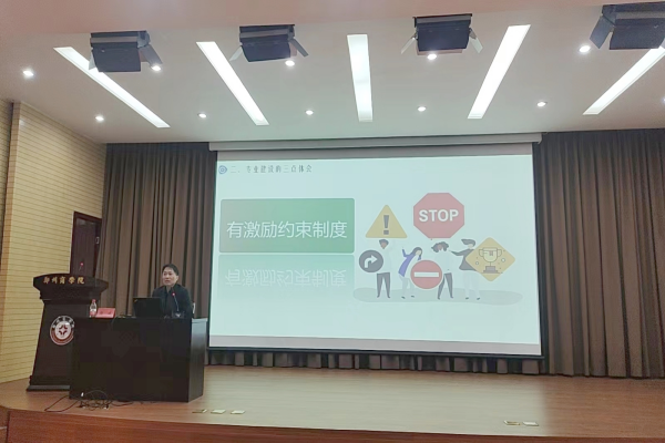 最后,聚焦于教师这一中心。杨教授结合自身组织专业建设的经验强调专业建设的核心是教师,他激励每位教师都应有主动发展自己的意识,找准自己的优势和发力点,主动融入学院专业建设,形成共同体意识,建设好自己、贡献于专业、共促学校的高质量发展。