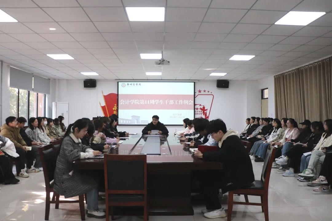为全面落实学院工作安排,推动学院工作的进一步开展,建设优秀的学生干部队伍。11月21日中午,会计学院全体学生干部在广恩楼103会议室召开第十一周学生干部工作例会。