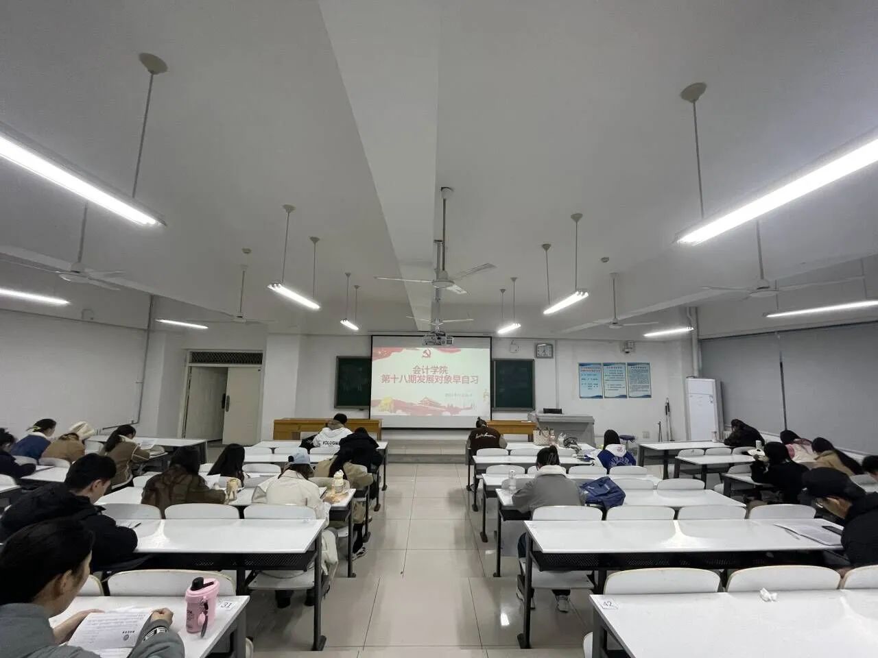 自习期间同学们热情高涨、精神集中,利用宝贵时间,高效率学习党史等党的理论知识,对党的理论知识有了更进一步的理解和认识。发展对象在自习期间的表现,体现其端正的学习态度,坚定的理想信念。