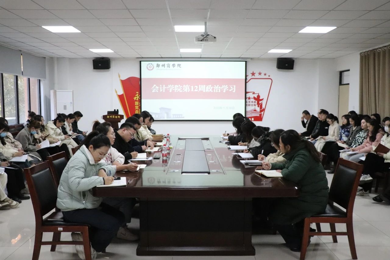 11月30日下午,会计学院在广恩楼103会议室组织召开政治学习。校长助理刘升阳、会计学院院长祝利芳、党委书记刘宏涛以及会计学院全体教职工参加会议,本次会议由党委书记刘宏涛主持。