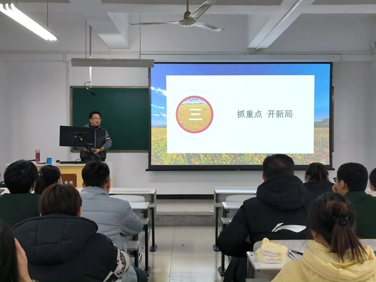 课上,王俊明老师重点讲述了国家对脱贫地区“稳政策、防返贫、固成果”的政策。用大凉山悬崖村的易地搬迁扶贫事迹的实例,形象生动地讲述了党和国家对贫困地区的帮扶政策,并指出粮食安全对国家的重要性和推进乡村振兴对保障国家粮食安全的意义,在推进乡村振兴过程中,要把保障农民利益放在第一位,把富民产业发展好、把硬件软件建设好、把乡村治理推进好。