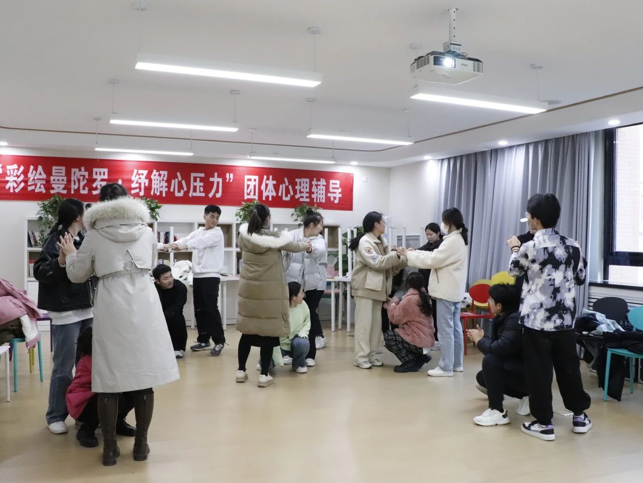 本次活动首先由杨茗涵老师对考研学生进行心理疏导,随后由孙柳阳老师带领考研学生开展松鼠搬家、彩绘曼陀罗等心理辅导游戏。