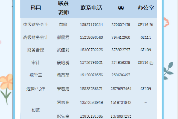 答疑教师联系方式汇总