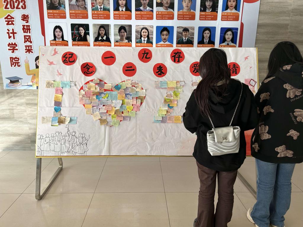 为弘扬革命先烈精神,发扬一二·九运动的爱国主义精神,赓续青年红色血脉,切实增强广大学子社会责任感和历史使命感,2023年12月7日,我院在广恩大楼一楼大厅,举行了为期三天的“纪念一二·九,永存爱国情”为主题的便利贴展板活动。