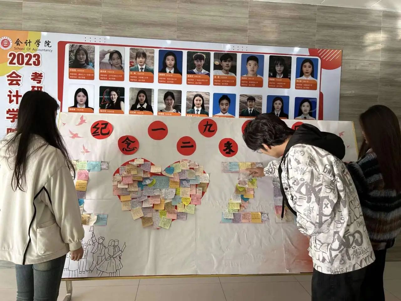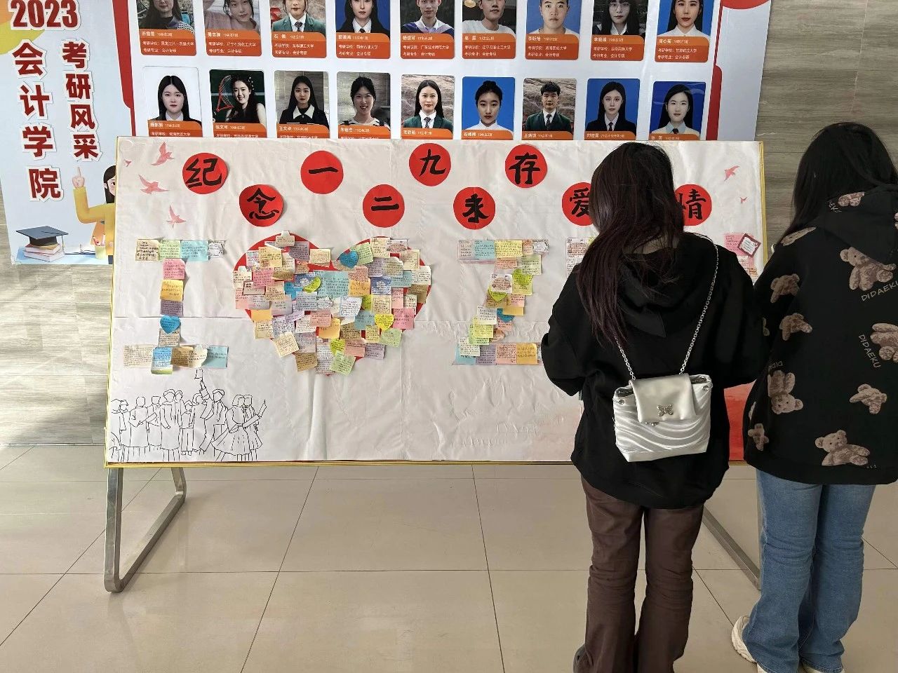 为弘扬革命先烈精神,发扬一二·九运动的爱国主义精神,赓续青年红色血脉,切实增强广大学子社会责任感和历史使命感,2023年12月7日,我院在广恩大楼一楼大厅,举行了为期三天的“纪念一二·九,永存爱国情”为主题的便利贴展板活动。