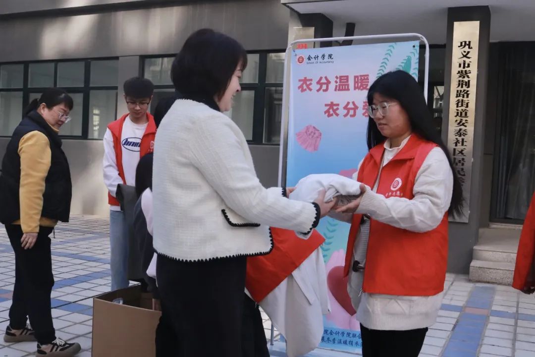 在活动结束后,会计学院于也让这些还有剩余价值的旧衣物得到最大化的利用,相关工作人员将衣物进行转交,将衣物送给需要的人群。