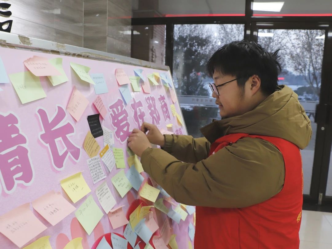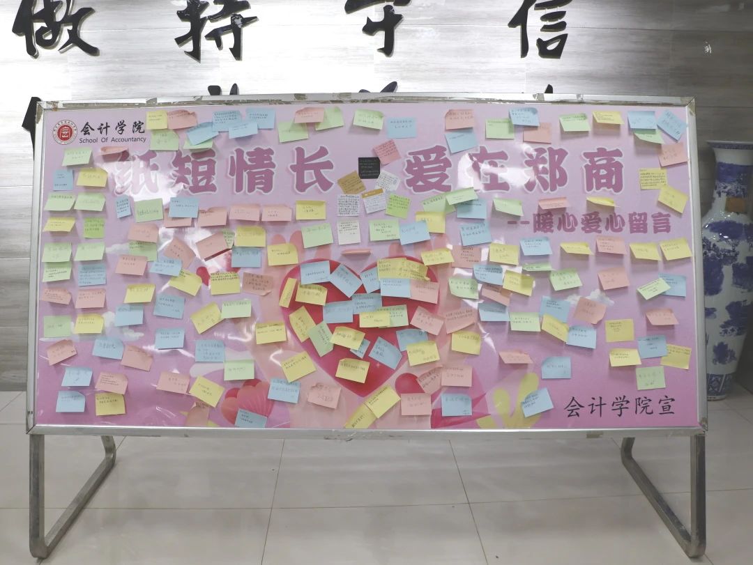 为积极响应学校在12月推出的“冬日暖情,爱在郑商”冬季温暖月主题活动号召,我院于12月19号至20号于广恩楼一楼大厅开展“冬季温暖月”系列活动二:“纸短情长,爱在郑商”便利贴活动。