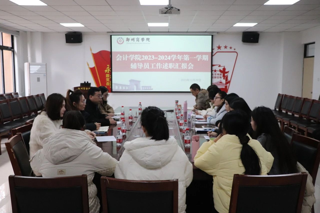 为持续优化服务发展型学生工作体系,推动辅导员队伍专业化、职业化发展,充分发挥辅导员在学生学业发展、成长过程中的教育和引导作用。12月29日,会计学院在广恩楼103会议室召开2023-2024学年第一学期辅导员期末述职汇报会,会计学院党委书记刘宏涛、团委书记杨茗涵、心理健康教育中心老师黄静静、李云佳以及会计学院全体辅导员参加会议。
