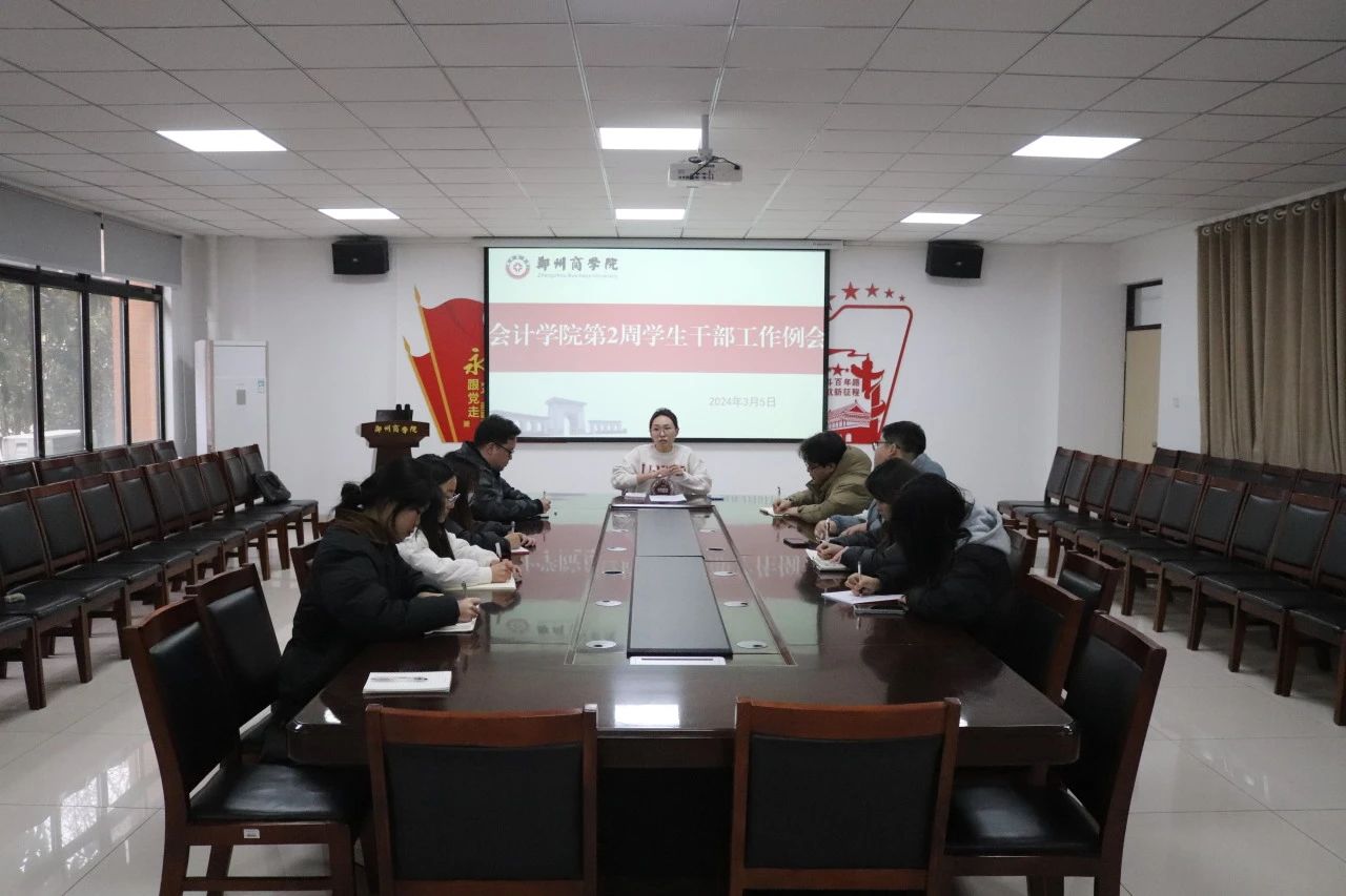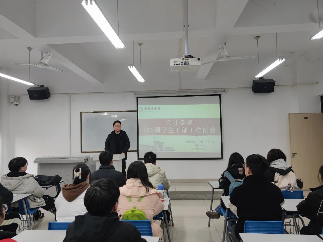 为进一步强化我院教学管理,提高学生会干部工作积极性,推动各部门工作有序开展。3月5日,行政秘书兼团委书记杨茗涵和会计学院全体学生干部在广恩楼103会议室召开第二周学生干部工作例会。