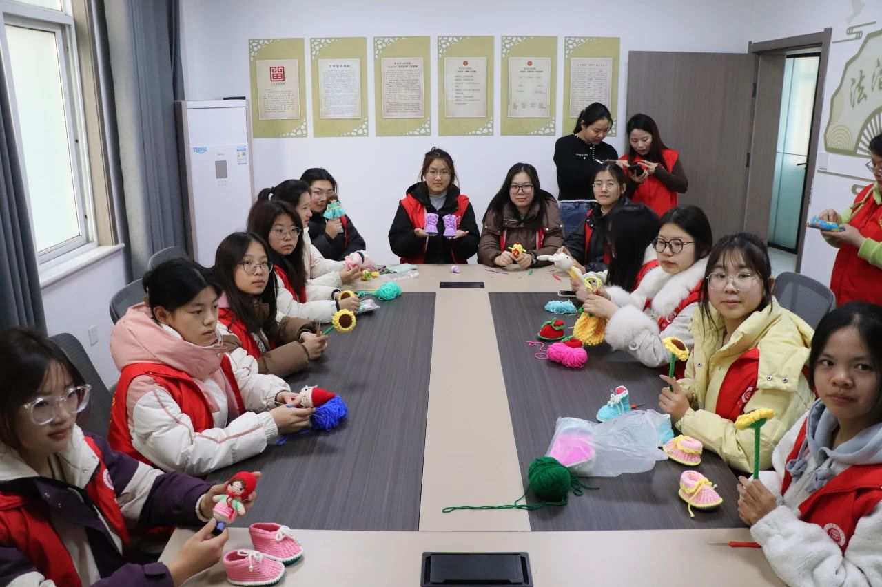 活动开始后,在社区工作人员的带领下,志愿者们体验手工制作活动——钩织挂件。不同颜色的毛线在志愿者手下交织缠绕逐渐形成挂件雏形,带给志愿者们不一样的实践体验。