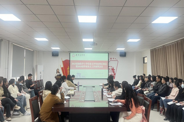为进一步加强和规范本科毕业论文质量管理,确保本科毕业论文的质量,3月14日下午,我院在广恩楼103会议室召开2023届抽检学士学位论文评审结果反馈会暨2024届毕业论文工作部署会议,院长祝利芳、党委书记刘宏涛,副院长刘金金及全体无课教师、辅导员参加了此次会议。