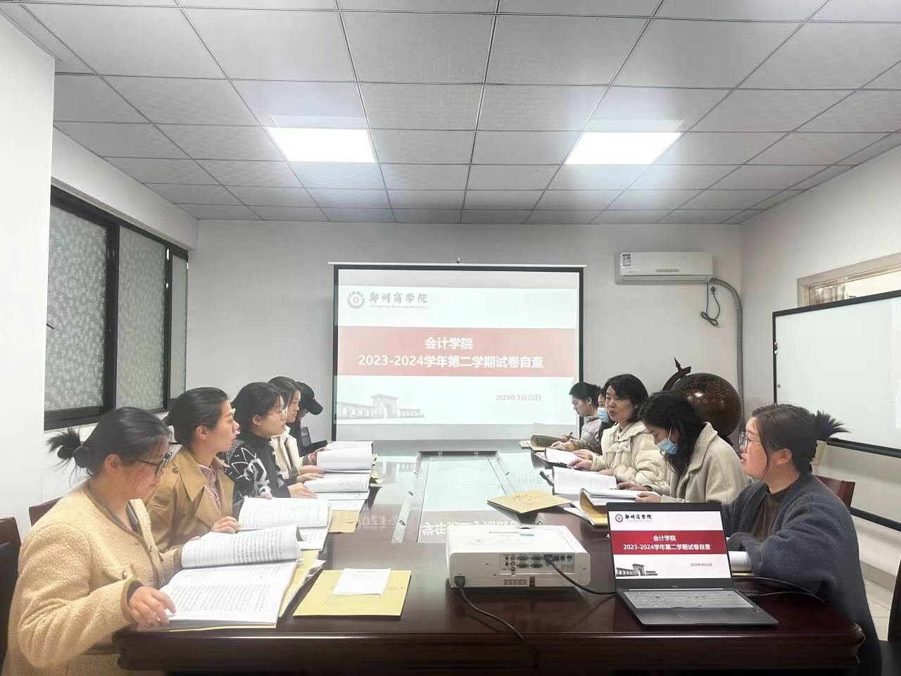 为加强教学质量管理,落实并规范学生期末试卷的归档,我院3月26日下午在广恩楼会议室对2023-2024学年第一学期期末试卷进行自查,我院副院长刘金金带领试卷组老师参加此次试卷检查工作。