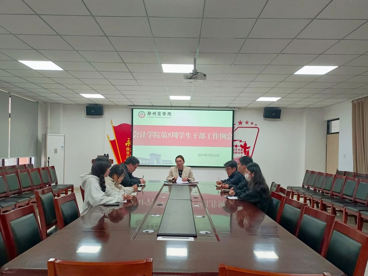 为进一步强化我院教学管理,提高学生干部工作积极性,推动各部门工作有序开展。3月26日,行政秘书兼团委书记杨茗涵和会计学院轮值主席在广恩楼103会议室召开第五周学生干部工作例会。