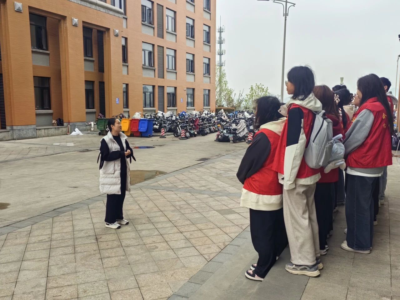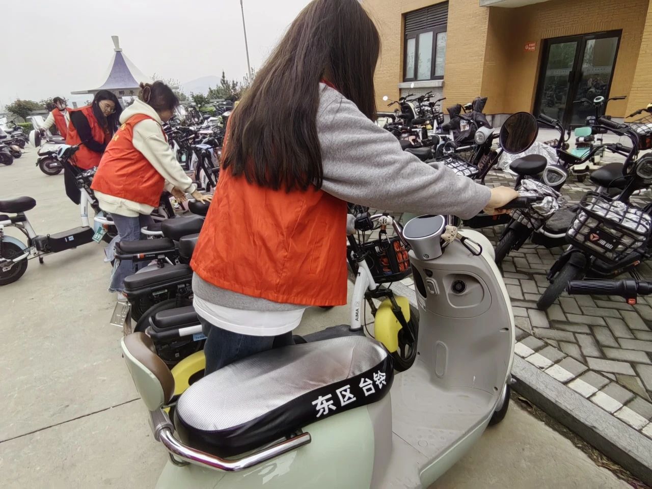 活动伊始,在孙柳阳老师的带领下,志愿者先将违规停放的电动车停放在指定位置,并按顺序摆放整齐,为使志愿活动顺利开展,孙柳阳老师强调了活动秩序,活动流程和摆放的具体规范,并将学生分为两队开展活动。
