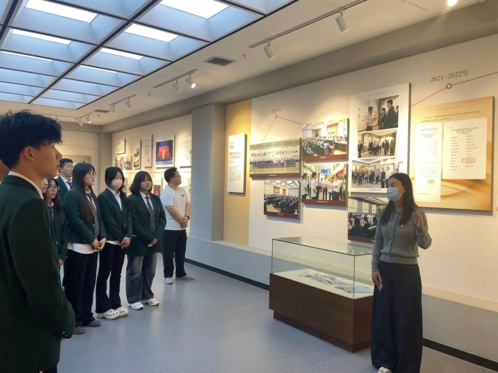 进入校史馆,各党支部书记分别带领学生党员和入党积极分子们回顾了学校艰苦创业、快速发展和开拓进取的发展历程,认真观看了馆内“印象篇、感恩篇、发展篇、未来篇”四个篇章,深入了解了学校的人才培养、教学科研、文化传承和社会服务等情况。