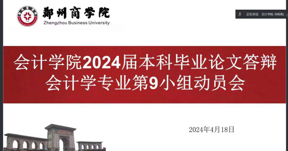 为严格把控2024届毕业生论文质量,确保答辩工作顺利进行,在我院前期召开师生答辩动员会的基础上,4月19日上午,我院在广恩楼103会议室召开了2024届本科毕业论文答辩工作推进会,会计学院院长祝利芳、副院长刘金金、全体论文指导教师参加了此次会议。