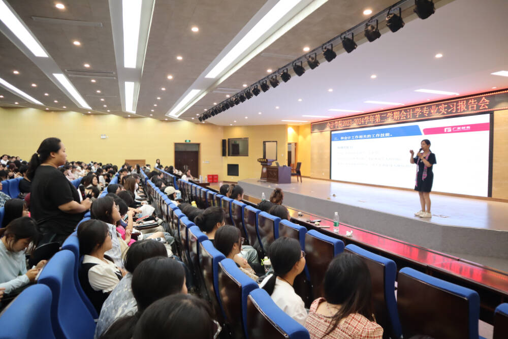 为提升学生实践能力,感知专业场景,增强实务经验,我院于5月22日下午在自力楼报告厅举办专业实习报告会,邀请河南广发财务管理有限公司张稚敏老师开展专业实习报告会,21审计1、2班,21会本2、4、6班学生及指导老师参会。